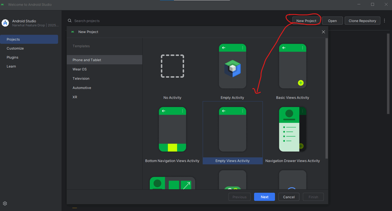 💡 Tip: If Android Studio asks to install missing components, click “OK.” It’s setting up essential tools automatically.